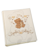 Album portafoto nascita, mm 230x300, 30 o 50 fogli, carta avorio, prime pagine illustrate o meno, lingua nell'illustrato: italiano. Copertina rivestita in tessuto piquet lavorato cotone 100% con soggetto ricamato. Ricamo neutro.